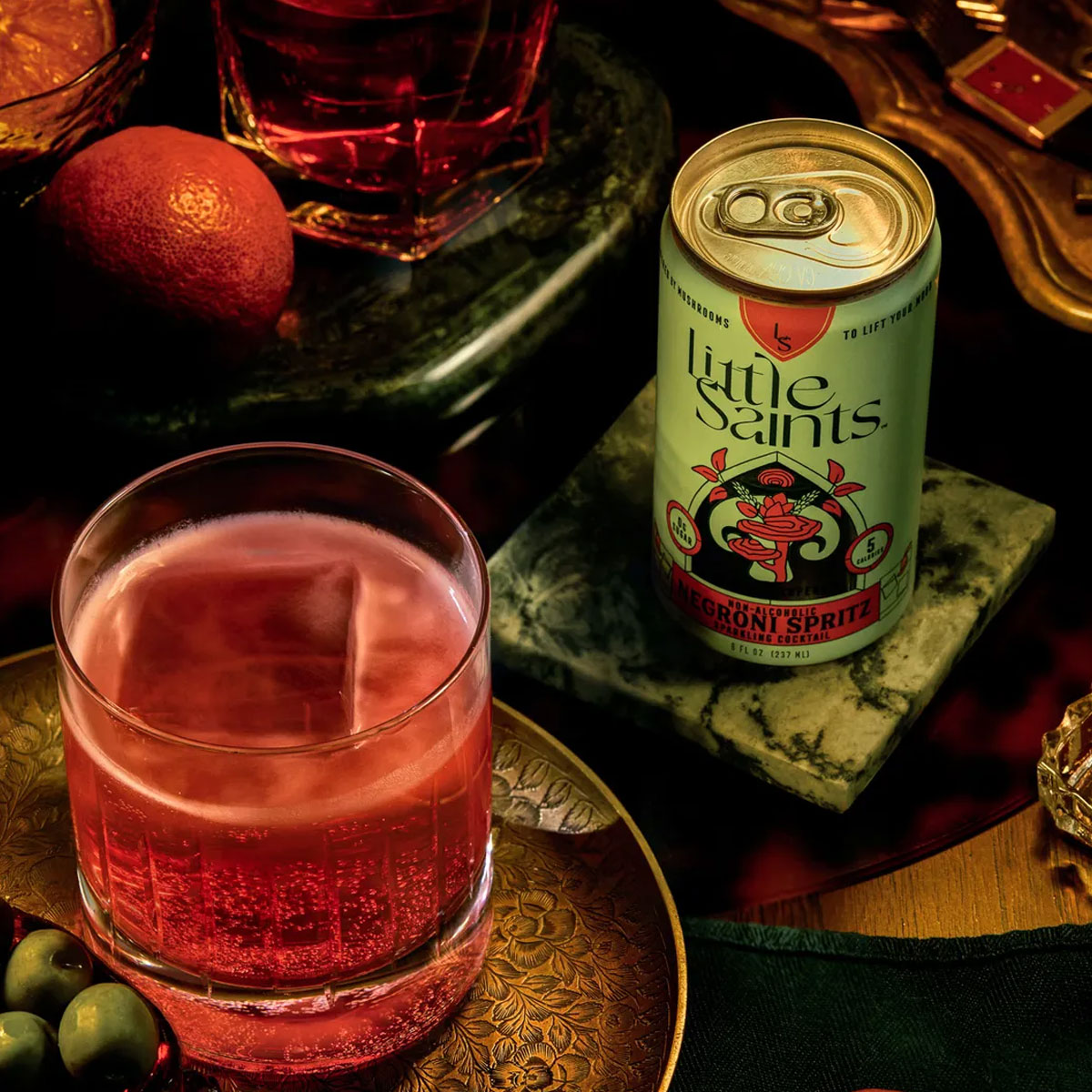 Ingredients: Carbonated Water, Natural Flavors (Derived from Botanicals), Monk Fruit Juice Concentrate, Citric Acid, Organic Reishi Mushroom Extract (min. 70% beta glucan), Botanical Terpenes, Vegetable Juice (for color)