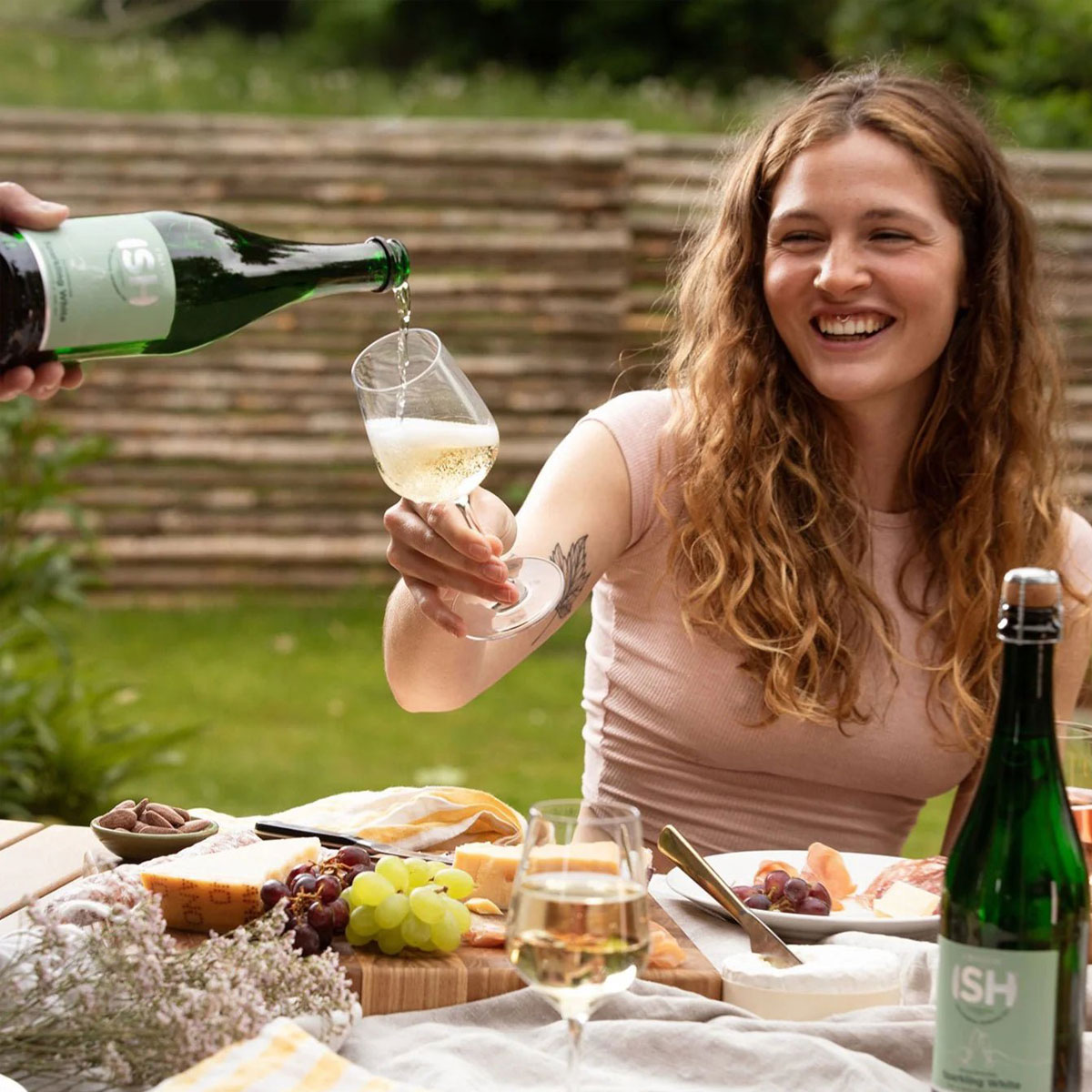 ISH Sparkling White is an award-winning non-alcoholic sparkling white wine. Made from a base of Pinot Blanc and Silvaner grapes that are gently dealcoholized at low temperature to preserve the unique character of the grapes, so we can deliver the most authentic non-alcoholic wine experience.